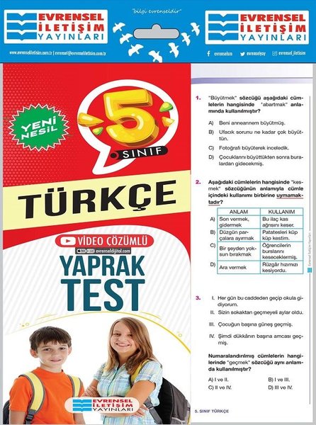 5. Sınıf Türkçe Yeni Nesil Yaprak Test