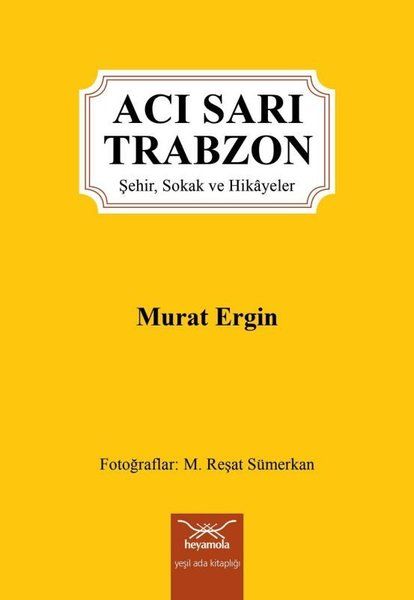 Murat Ergin'in duyarlıklı izlenimci yorumlarıyla, M. Reşat Sümerkan'ın fotoğraflarıyla tanıklık yaptığı görsel şölen: Şehir, Sokak ve Hikâyeleriyle, “Acı Sarı Trabzon”, kadim kültürümüzü hatırlatan, şehrin hafızasını, yenileyen bir kitap.