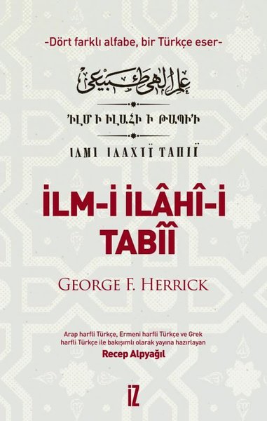 İlm-i İlâhî-i Tabîî'nin dört farklı alfabeyle birlikte neşriyle, Türkiye'deki yayıncılık tarihinde bir ilke imza atıldığı ifade edilebilir. Eser, sadece bu vasfıyla bile oldukça ayrıcalıklı bir konumdadır. İçeriği ise klasik metafiziğin en üst konusu olan “Allah” hakkında düşünmeye hasredilmiştir. “İlm-i ilâhî-i tabîî”, günümüz Türkçesindeki doğal teoloji tabirinin karşılığıdır: Tabiat üzerinden, tabiatın ötesine doğru giden bir felsefe faaliyetidir. Herkesin paylaştığı gözlemlere ve sezgilere dayanarak, tabiatın sunduğu delillerle Tanrı hakkında düşünmektir. Kitabın yazarı, Amerikalı George F. Herrick, elli yıl Osmanlı İstanbulu'nda yaşamış bir isim. “Giriş” kısmında yer alan hayat hikayesi, Osmanlı'nın 1859-1911 aralığını çok farklı bir gözle anlamayı mümkün kılmaktadır. Haliyle, okuru her açıdan meraklı bir okuma serüveninin beklediği söylenebilir.