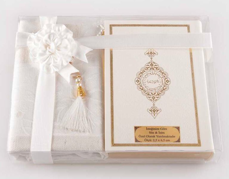 Seccade + Tesbih + Kuran Hediye Seti (Hafız Boy, Beyaz)